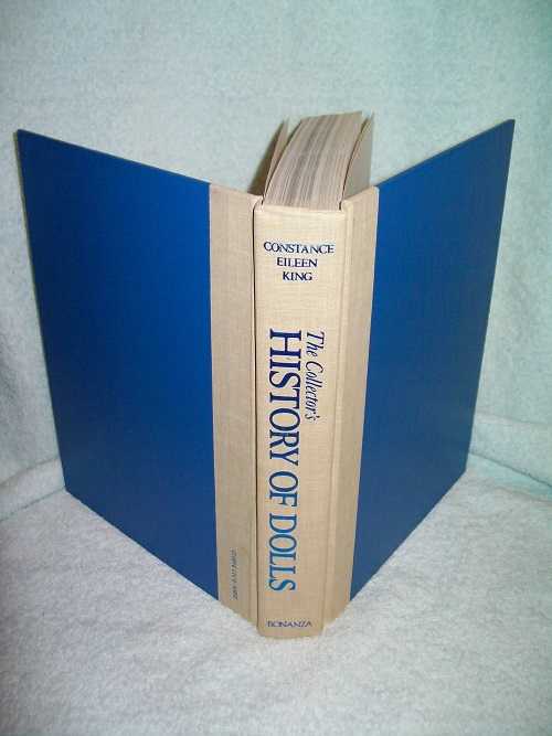 Bonanza, New York, 1981.  ISBN 0-517-34801-2.  Hard cover, 608 pages including Glossary, Museums, Bibliography, and Index.  Very good; light edge and cover wear; binding sound with headbands; no jacket.  Some pencil on rear paste-down; remainder of interior clean and unmarked; colour and black & white photos.  ‘… in the writing of the present book an attempt is made to give as full an account as possible of the chronological history of the doll.  The doll’s evolution cannot be discussed merely in the cold terms of “schools” or “periods”, but must be related to the social context of the lives of the children who owned them …’ (from Introduction)