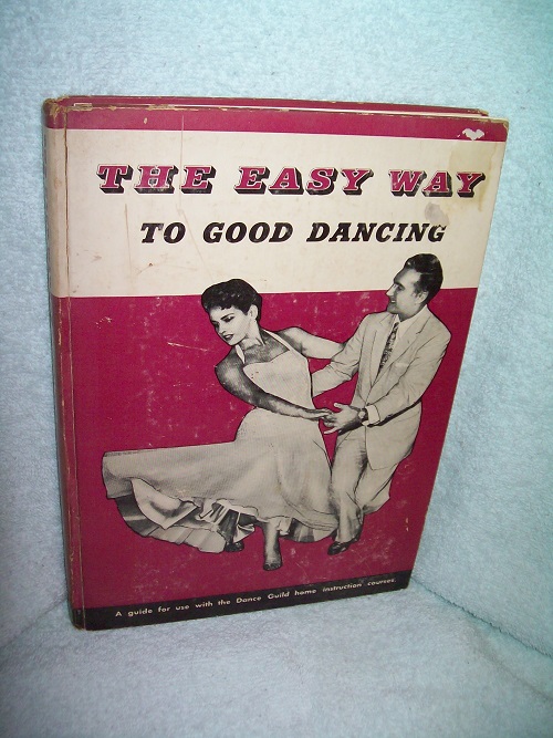 Book Guild of America, New York, 1956.  Hard cover, 64 pages.  Illustrated boards show edge and cover wear, with rubs, chipping, small scars, scratches and soil.  Corners and spine ends heavily worn; small punctures along front spine edge; paper split at top front gutter.  Binding is sound with all pages intact and secure.  Interior clean and unmarked with tanning pages; illustrated with black & white drawings.  Includes “Your Dancing Footprints” booklet with punch-out Directional Guides, and punch-out Dancing Footprints – 6 left and right for him and 6 left and right for her.  ‘A guide for use with the Dance Guild home instruction courses.’ (from front cover)