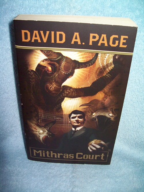 Wizards of the Coast, Renton, WA, 2008, 1st pr.  ISBN 978-0-7869-5068-3.  MMPB, 344 pages.  Unread copy with light edge and cover wear, a bit of colour chipping along edges and spine.  Interior clean and unmarked; pages tanned.  ‘Evil men slaughtered innocents on a train, dooming Lewis Wentworth to a life spent wandering, searching for his wife’s murderer, a task larger than one man, no matter how devoted.  Chance finally throws the killer into Wentworth’s path, even as it takes them both to a strange place where nothing is as it seems and evil holds sway.  And still Lewis searches, but now it is for a way to leave Mithras Court.  But there is another man, with grand ambitions and plans, who needs Wentworth.  And his wife.  And sometimes, love does not end when life does.’ (from rear wrap)