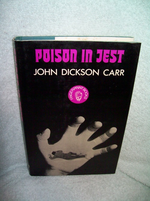 Hamish Hamilton, London, 1977, First Edition/Printing thus; A Fingerprint Book. ISBN 0-241-89718-1. Hardcover, 192 pages. Very good; teal boards with gilt lettering and fingerprint on spine. Corners and spine ends are lightly bumped; binding sound with a slight lean; light foxing on outer page block. Dust jacket with price intact shows some rubs and scratches, a bit of edge wear, some fox spots at upper and lower edges of inner flap folds; no tears. Bit of soil on one page; remainder of interior clean and unmarked. ‘… intrigues the reader with a totally new detective, Rossiter, … has credentials from Scotland Yard, but cannot keep a job anywhere. He solves the Quayle murders, however, by means of an empty paint bucket, a view from the window, and an absentminded drawing in a book. … Shut into his library with his books and manuscripts, Judge Quayle lived in terror until he drank the poison glass of brandy. Any member of the household in this ghostly place beside the mountains might have been guilty. There were four clues written in the yellow book, and a listener overheard Doctor Twills outline the subtlest way to commit murder.’ (from front flap)