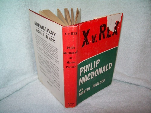 Collins, London, 1973, Crime Club. ISBN 0-00-244960-9. Hard cover, 254 pages. Very good; red boards with black lettering and logo on spine; bit of edge and corner wear, slight flare to front board; binding sound. Dust jacket with price intact has edge and cover wear, short edge tears, scar on upper front panel, some rubs, wear at corners and spine ends. Book interior clean and unmarked with tanned pages; scrape on upper page block. Philip MacDonald writing as Martin Porlock. ‘For the perpetrator of a series of appalling murders in the greatest city of the world to defy capture and remain at large, killing, is a blow at the very structure of society; how much more is this so when the victims of his knife are the guardians of the Law themselves? A policeman is killed in amazing circumstances, in a country town near London – and the hunt is up! Another and still another murder is committed until the apparently never-ending series of diabolical crimes engages the serious attention of the whole Cabinet.’ (from front flap)