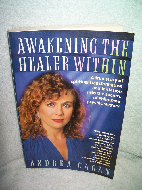 Fireside, New York, 1990, 1st pr. ISBN 0-671-70087-1. Trade soft cover, 192 pages. Very good; some edge and cover wear, small chip at upper rear spine edge, covers curling; binding sound. Interior clean and unmarked; black & white photo plate section. ‘… she vividly chronicles her journey through the Philippines, the many actual psychic operations she witnessed (including photographs), her own apprenticeship with several healers (including the renowned Reverend Alex Orbito …), the psychic surgery she underwent herself, and her pilgrimage to a holy mountain and sacred cave where she faced her dark night of the soul and the true initiation her journey held. … Andrea was transformed from skeptic to believer, and ultimately to self-realized healer.’ (from rear wrap)