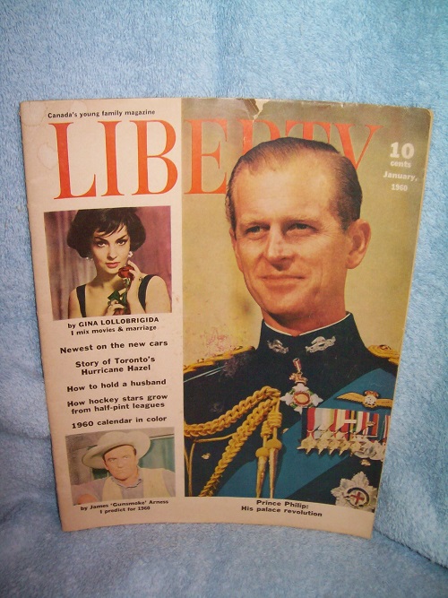 Consolidated Press, Montreal, 1960. Canada’s young family magazine, 56 pages. Covers have edge and cover wear, some soil and a few spots, tear and small loss at top front edge, tears and small losses along spine edge; short edge tears, small stains and partial sticker on rear cover. Interior clean and unmarked; black & white photos and drawings, ads are in colour. Includes 12 Articles, 1 Story, 6 Columns and 7 Features. Some of the Articles are: New Cars You’ll Drive in 1960, Celebrities’ predictions for 1960, Prince Philip’s Palace Revolution, When Hurricane Hazel Hit Toronto.