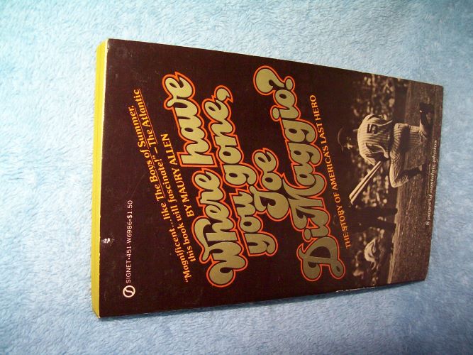 Signet, New York, May 1976, 1st pr thus, unauthorized printing.  MMPB, 180 pages including About the Author.  Wraps show some edge and cover wear, small ding at top edge of front wrap, light reading creases.  Interior clean and unmarked with tanned pages; 8 pages of nostalgic photos.  ‘He was the greatest public hero in America – and quite possibly its most private person.  He made the impossible look easy on the ballfield – and found casual small talk an ordeal.  He was the straightest and most moral of men – and the adoring husband and perhaps the only true love of the tragic Marilyn Monroe.  He was a human being who became a legend, and who not only lived up to it, but resisted corrupting adulation,’ (from rear wrap)