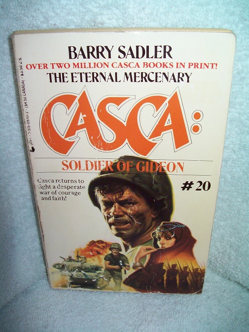 Jove, New York, 1988, 2nd pr.  ISBN 0-515-09701-2.  MMPB, 168 pages.  Good; wraps show edge and cover wear, rubs, creases and reading creases; binding sound with a lean.  Book store stamp in bottom margin of first page; remainder of interior clean and unmarked with tanned pages; date stamped on bottom edge.  ‘Casca returns to the Middle East.  But it’s the twentieth century, and he’s signed on to fight a religious war.  Outnumbered and poorly equipped, many of the recruits have never seen combat.  Casca expects a slaughter.  It won’t be the first time he’s seen his comrades turning the merciless desert sands red with their own blood.  But how could the Eternal Mercenary have known that he’s joined the most devastatingly efficient army of the modern age?  For what begins as a slaughter - ends in a six-day victory!’ (from rear wrap)