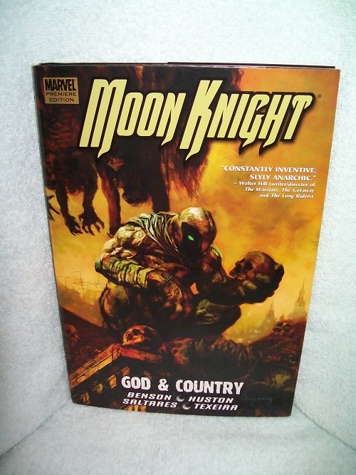 Marvel, New York, 2008, 1st pr thus.  ISBN 978-0-7851-2892-2.  Hard cover, unpaginated (approx. 184 pages).  Collecting Moon Knight #14-20.  Unread copy, new (2 still in shrink wrap).  ‘The Civil War is over, and the pro-registration forces won.  Iron Man … has put the call out to masked heroes everywhere:  Get on the right side of the law and play by the rules.  Amazingly, Moon Knight has answered the call.  But playing by the rules has always been the hard part for Marc Spector and the avatar of Khonshu!  And now the city whose streets are on fire with his vengeance wonders how in the world did someone like Moon Knight get approved for registration?  Iron Man is not waiting for an answer.  Especially since thugs, dealers and gangsters everywhere are turning up dead with the shape of a crescent moon carved into their foreheads!  Is that the calling card of the Moon Knight?  Or something more sinister?’ (from rear panel)