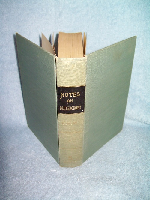 Loizeaux, New York, 1954, 25th pr. Hard cover, 436 pages. Green boards with gold lettering on spine, title in gold on black block. Some corner, edge and spine end wear; binding sound. No jacket. Interior clean and unmarked with lightly tanned pages. ‘The Jewish lawgiver presses with great earnestness the Word of Jehovah on the heart of Israel. It is not a book of ceremonies, but the reminding of the people of their obligations to keep the commandments, the statutes, and the judgments of the Lord.’ (from Preface)