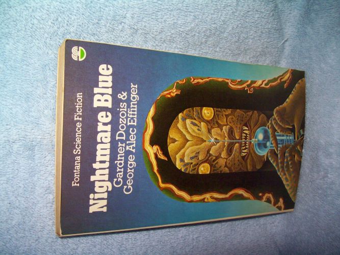 Fontana, Great Britain, 1977, 1st pr thus. ISBN 0-00-614617-1. MMPB, 190 pages. Wraps have light edge and cover wear, light creases; bit of age spotting on outer page block; binding sound with a very slight lean. Interior clean and unmarked with tanning pages. ‘The evil and wolf-like Aensalords are poised to enslave the Universe. They have developed the most horrifying drug ever known: one shot is addictive, withdrawal symptoms are death. Only Karl Jaeger, the last private eye in a peaceful world, and Corcail Sendijen, a lobster-like alien agent, can stop them. Together, in an unlikely alliance, they brave the horrors of the Aensalord stronghold to discover and destroy the source of Nightmare Blue.’ (from rear wrap)
