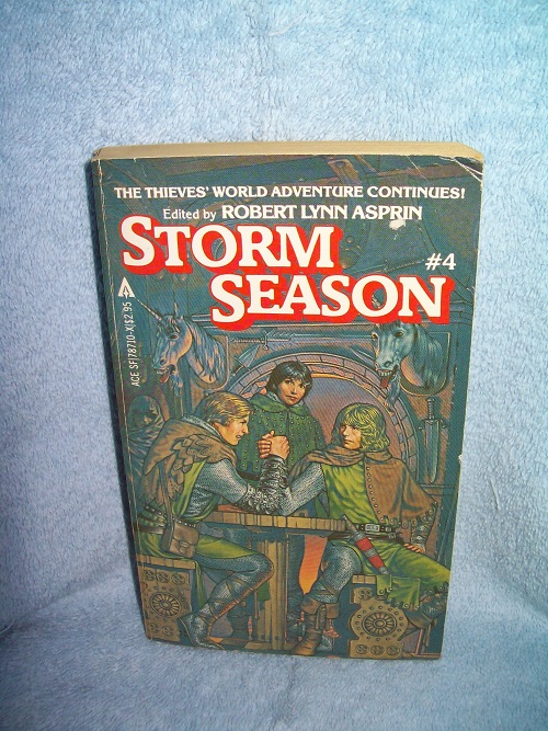 Ace, New York, 1982, 1st pr. ISBN 0-441-78710-X. MMPB, 305 pages plus ads. Wraps have edge and cover wear with a bit of soil, small creases and some impressions; reading creases along front hinge and spine; tiny tear at lower rear spine end. Binding cracked at p. 72 with all pages secure, slight roll to spine. Interior clean and unmarked with tanned pages. Includes: Introduction; Exercise in Pain by Robert Lynn Asprin; Downwind by C. J. Cherryh; A Fugitive Art by Diana L. Paxson; Steel by Lynn Abbey; Wizard Weather by Janet Morris; Godson by Andrew J. Offutt, and Epilog. ‘In which the clouds of war gather on the horizon, and the motley assortment of thieves and swordsmen and small-time sorcerers who make up the town of Sanctuary must decide once and for all which side they are on.’ (from rear wrap)