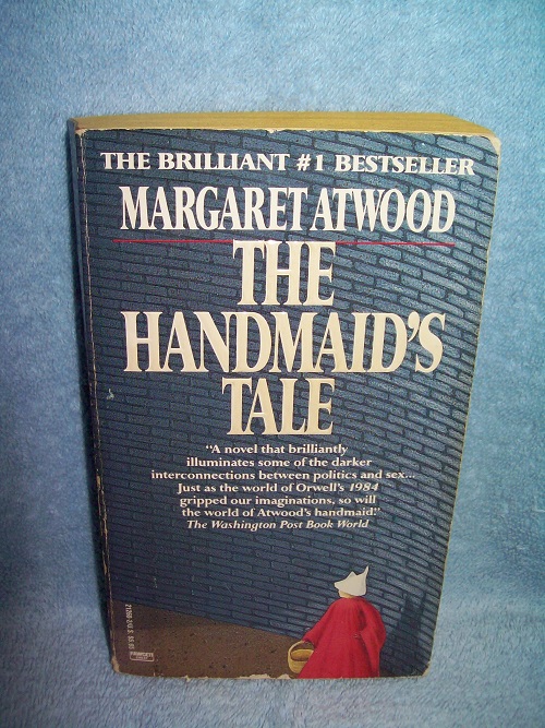 Fawcett Crest, New York, 1989, reprint. ISBN 0-449-21260-2. Soft cover, 395 pages. Good reading copy; wraps show edge and cover wear, rubs, small chips, reading creases, tear on rear wrap repaired on verso, small tears at lower spine edges; binding sound. Small splash drops on first blurb page; remainder of interior clean and unmarked with browning pages. ‘Offred is a Handmaid in the Republic of Gilead. She may leave the home of the Commander and his wife once a day to walk to food markets whose signs are now pictures instead of words because women are no longer allowed to read. She must lie on her back once a month and pray that the Commander makes her pregnant, because in an age of declining births, Offred and the other Handmaids are valued only if their ovaries are viable. Offred can remember the years before, when she lived and made love with her husband Luke; when she played with and protected her daughter; when she had a job, money of her own, and access to knowledge. But all of that is gone now…everything has changed.’ (from rear wrap)