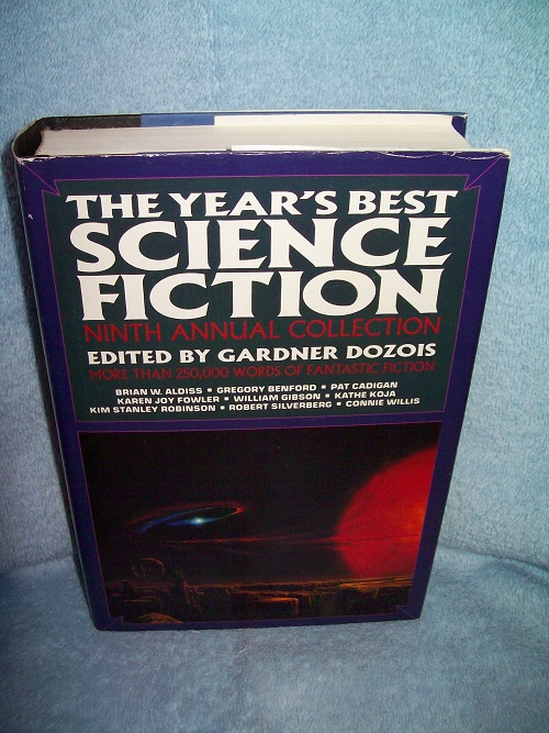 St. Martin’s, New York, 1992, BCE. Hard cover, 575 pages. Blue boards with white lettering on black spine; spine ends very lightly bumped; binding sound; a few age spots on outer page block. Dust jacket shows some edge, corner and spine end wear, light rubs, scratch on rear panel. Interior unmarked, pages white, one small soil spot in upper margin noted. A collection of 28 stories which the editor considers to be the best of 1991. Each story is prefaced with a short biography of the author; honourable mentions are listed at the rear.