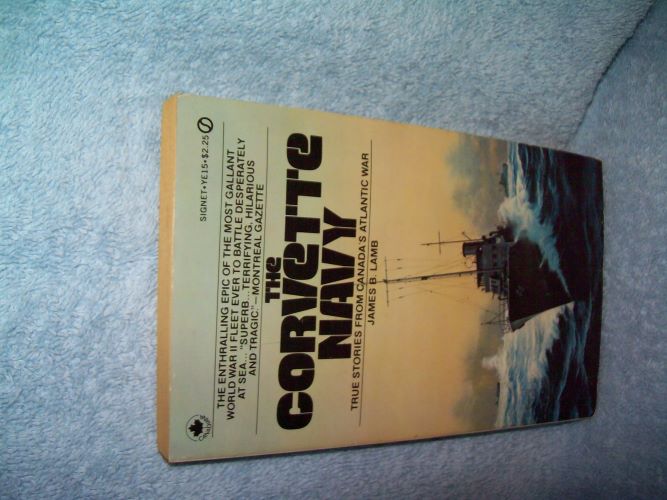 Signet, Scarborough, ON, 1979, 2nd pr. ISBN 0-7723-0015-1. MMPB, 181 pages including Glossary and About the Author. Unread copy; light edge and cover wear; tight binding; old water mark along lower edge of rear wrap and bottom margins of last several pages. Interior clean and unmarked with lightly tanned pages. ‘Suddenly there were two Canadian navies. One was the traditional, pre-war navy, with its top-heavy gold braid and hallowed customs and conventional fighting ships. The other was created virtually overnight to counter the most deadly menace ever to threaten the Commonwealth – the murderous Nazi U-boat wolf packs of World War II. And suddenly it had become a new kind of sea war with a new kind of ship – the Corvette – small, battered, and ill-equipped. And a new kind of sailor – ex-landlubbers who came from Canada’s factories and farms, offices and classrooms, prairies and cities. Amateurs who had to learn the art of battling a fierce and professional foe. This is the true saga of those ships and those men – and of the war they fought against all odds. It is a great epic of Canadian heroism, and of the desperate struggle that sent men to sea to triumph or to die.’ (from rear wrap)