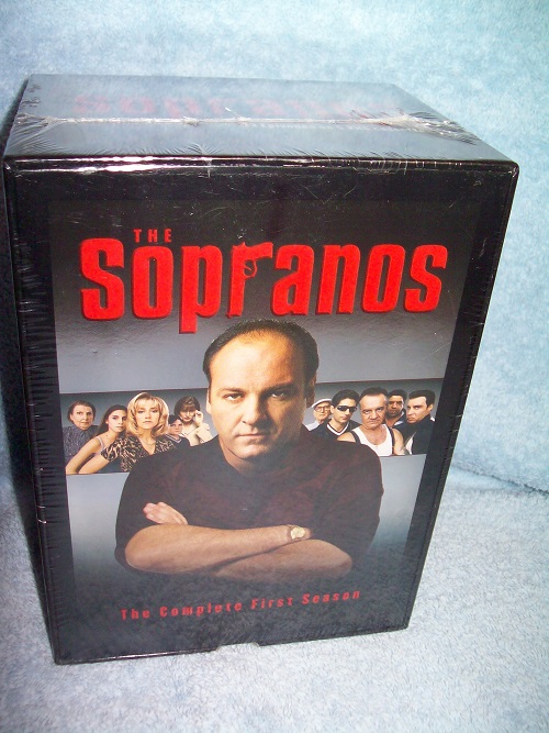 HBO Home Video, 2000, VHS video tape box set, NTSC, Closed Captioned, Colour, Drama. 13 episodes on 5 cassettes. New in shrink wrap. 680 minutes approx. playing time. Starring James Gandolfini, Lorraine Bracco, Edie Falco, Steven Van Zandt, Michael Imperioli, Dominic Chianese, Vincent Pastore, Tony Sirico, Robert Iler, Jamie-Lynn Sigler, and Nancy Marchand. ‘The story revolves around fictional New Jersey-based, Italian American mobster Tony Soprano (James Gandolfini). The series portrays the difficulties that he faces as he tries to balance his home life and his criminal organization. These are often highlighted during his therapy sessions with psychiatrist Jennifer Melfi (Lorraine Bracco). The series features Tony's family members, mafia colleagues, and rivals in prominent roles and story arcs, most notably his wife Carmela (Edie Falco) and protégé Christopher Moltisanti (Michael Imperioli).’ (from Wikipedia)